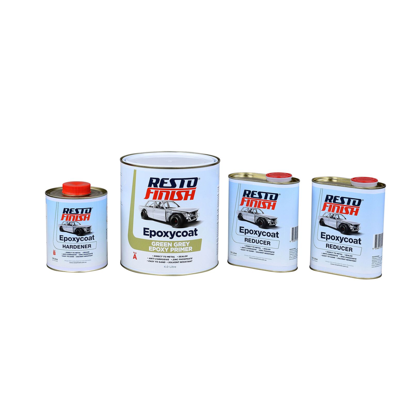 - Mix at 4:1 with Epoxy Hardener, then add 25% RestoFinish Epoxy Reducer